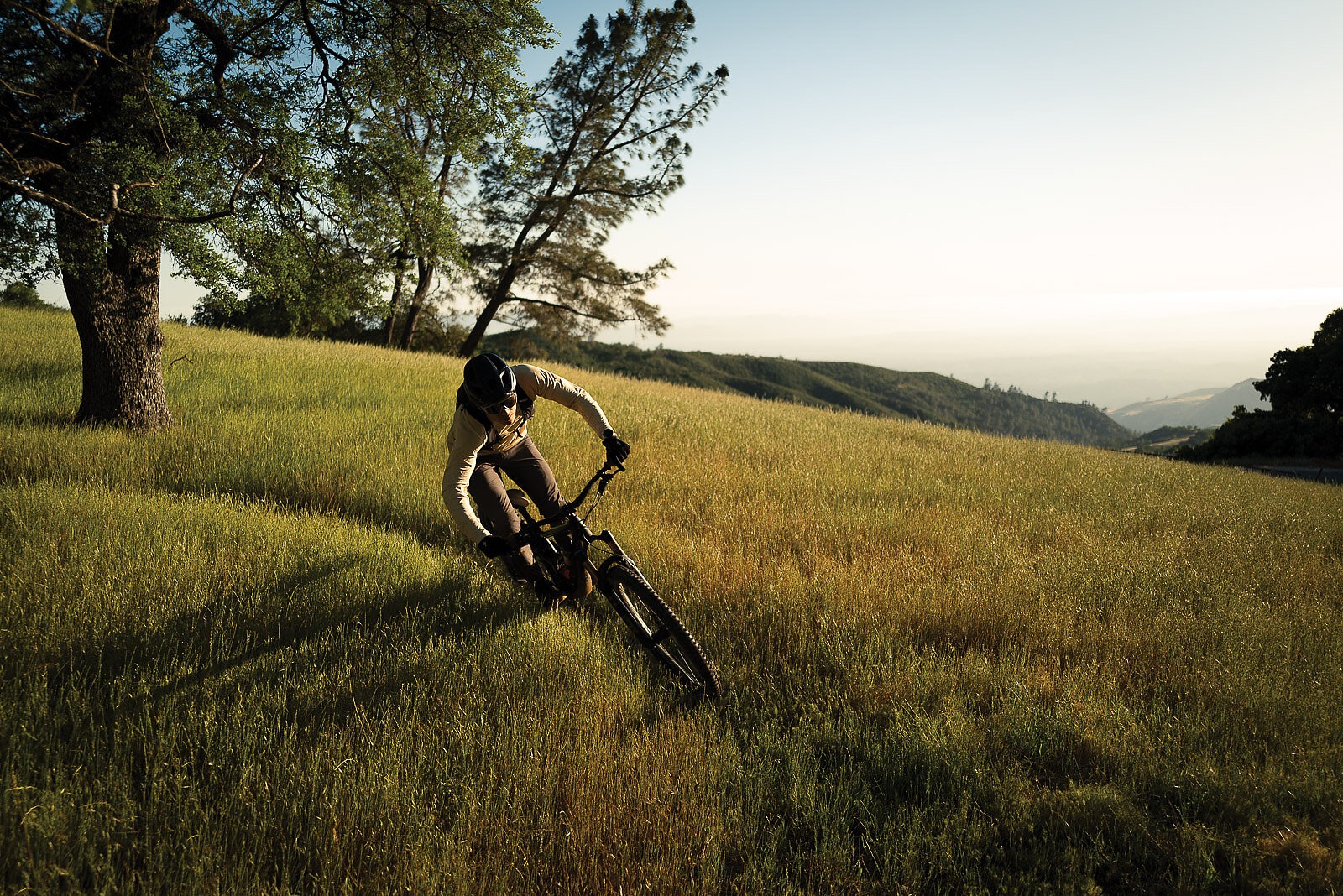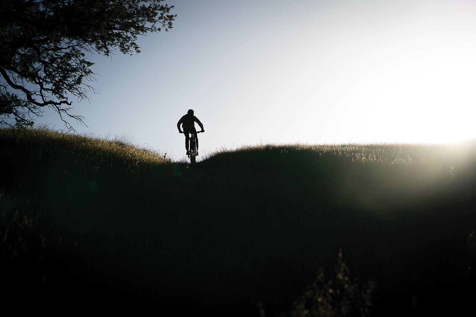 At this point, our eyes had gone bleary and bloodshot, and our hands were stiff and cramped in the shape of grips, whether on bike or off. One last drive up the ridge under dying light led to a cold metal gate at the end of a grassy field facing southwest toward the sunset. Under any other circumstance, this would be an easy cruise fit for a 140-millimeter trail bike, only requiring half of an attention span while the mind drifts off to distant views. Instead, these last four miles and 2,200 feet of descent, through waist-high wild grasses and wildflowers, pass in a blend of flow state and prayer that a day jammed with a month’s worth of riding can be escaped without mechanical or injury.