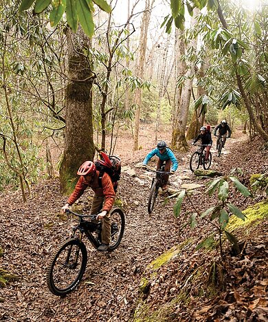 This vision helped spur the creation of the G5 Trail Collective, an organization housed out of Camp Grier that would partner with the Grandfather District to develop a trail system that would provide access to remote stretches of forest, create a trail culture within the community, and foster economic development in Old Fort. The plan worked. With the Grandfather District Rangers as a partner and 42 miles of new trail planned, McDougald put his shoulder to the fundraising and lobbying grindstone and raised more than $2.5 million to see the project to completion. The momentum was contagious. New trails opened with a frequency never seen in the area—including Lower Heartbreak Ridge, a modern backcountry masterpiece that embodied the vision from years before.
