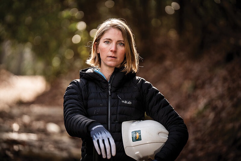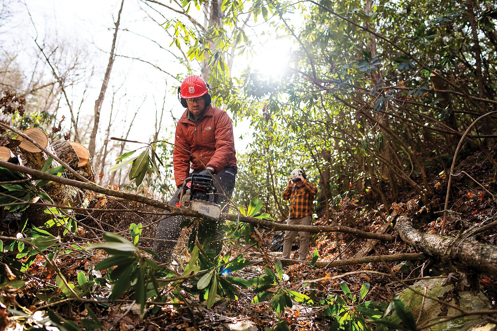 Lisa Jennings is a ranger in the Grandfather District and has worked closely with G5 and other partner groups to grow recreational opportunities in the National Forest. Her olive-drab uniform and yellow hardhat give away her government employee status. But when she speaks in her energetic mountain lilt, she reveals she is of the people, and for the people. Part environmental scientist, part land manager, and part wilderness philosopher, Jennings has clocked over a decade of public conservation work in the Grandfather District and is a newly certified crosscut sawyer.