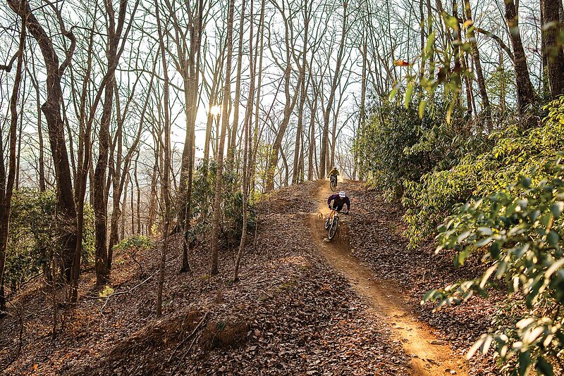 Mills, president and owner of Elevated Trail Design, started his company on the cusp of the modern era of trailbuilding in this region. His approach to trail projects is tempered by a business management degree from the University of North Carolina Asheville Center for Health and Wellness and his years growing up on local trails. Mills’ resume now includes high-profile projects such as YouTube star Seth Alvo's Berm Park in nearby Canton, the Greenslick trail in Pisgah National Forest, and countless other projects in the area.