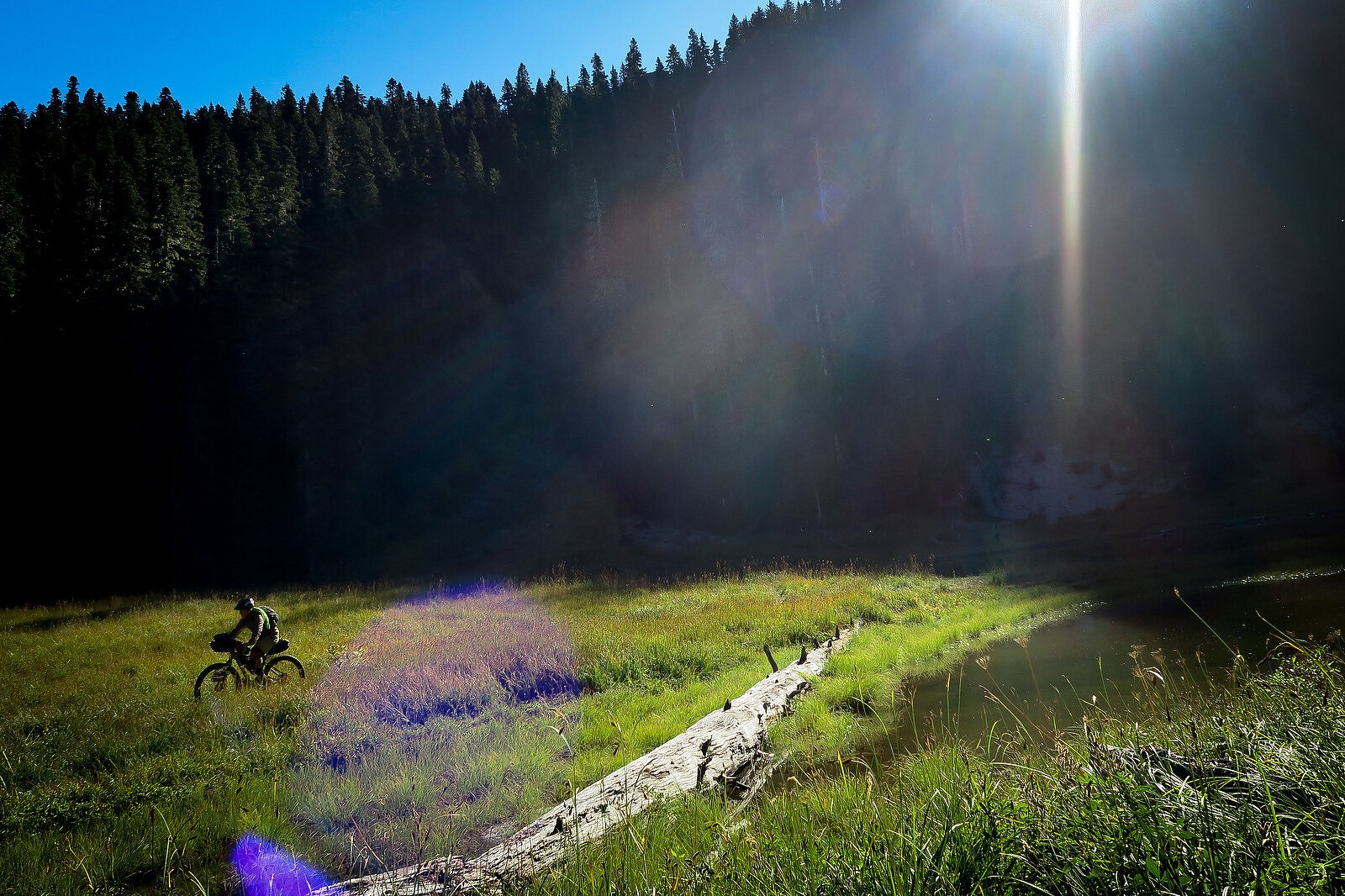 Luckily, I was still entirely in one piece. And though I didn’t have a spare derailleur, I knew we only had four more miles of mostly downhill trail. Links removed, chainline checked and I was back in the flow after a good bit of tinkering. Through a mix of soft-pedaling and pushing, I hobbled my way into camp as, yet again, day quickly turned to dusk. With our bikes set aside and gear exploded, we milked the last of the sun by swimming in a drainage ditch, hollers of “Hell yes!” ringing out from our campsite. Another day in the books. The following day called for 17 miles and the only real question that lingered was how many of those miles I’d be walking, versus riding, in an effort to get out of the wilderness and back to our point of origin.