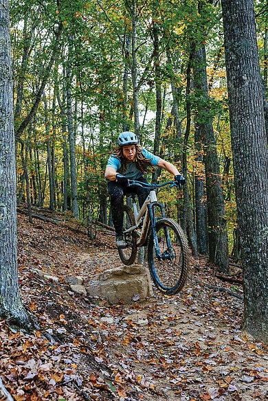 Because Pocahontas County averages 42 inches of annual precipitation (with some pockets receiving far more), Slaty Fork’s steep and rugged trails are often coated in slick slime or thick layers of mud. Here, even the most skilled riders are often pushed to their limits. But the rainforest- like conditions are a point of pride for locals who at the very least tolerate and at the very best excel at riding in the rain.