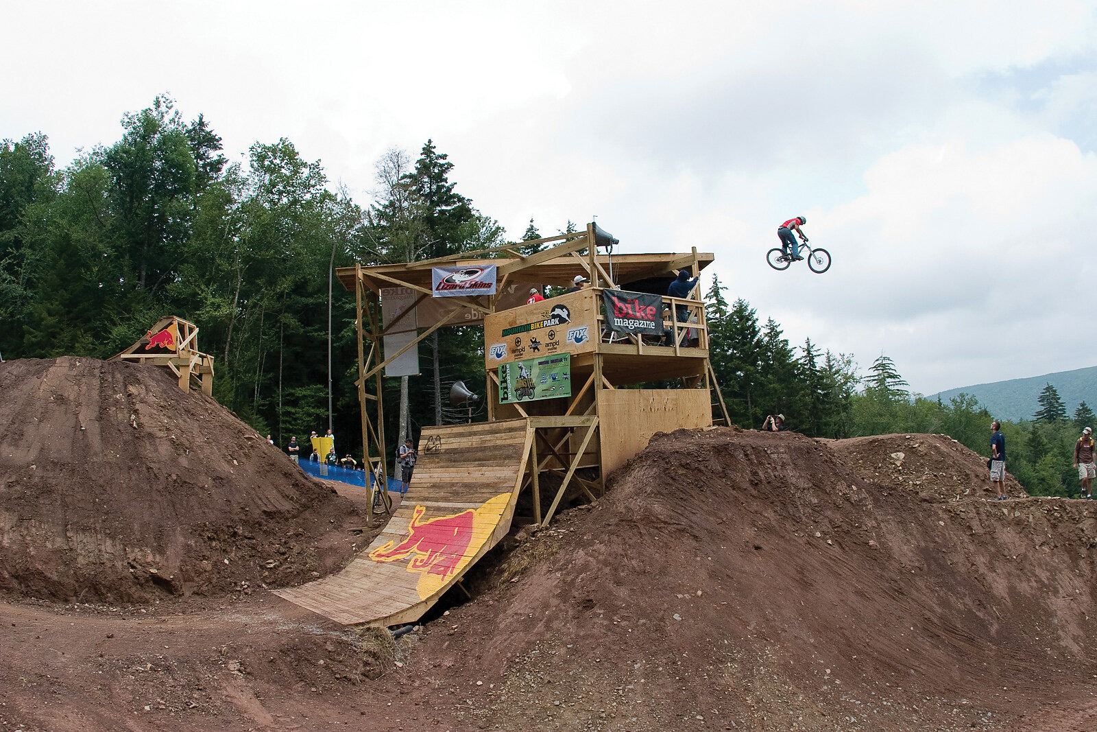 Embracing the rugged nature of Snowshoe’s terrain, the resort hosted the Bike magazine Monster Park in 2005 and 2006, a slopestyle event that featured massive wooden drops, wallrides, quarterpipes, and a series of sprawling gap jumps. To Guyette, Snowshoe’s ability to host events that attracted some of the best riders in the world was a major draw, ultimately inspiring him to move to Snowshoe in 2011. The concept of machine- built flow trails wouldn’t arise until a handful of years later.