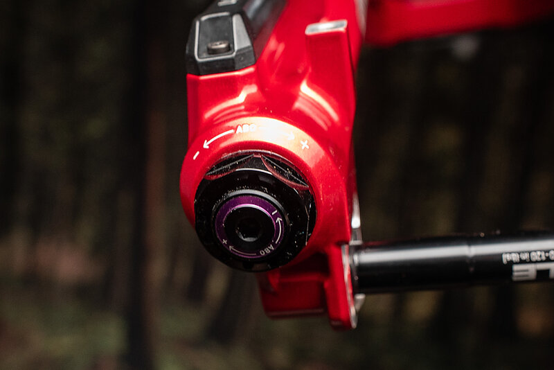 At the bottom of the spring leg, there’s a hex adjustment for the Lyrik’s Adjustable Bottom Out. This tunes the timing of when the bottom out bumper contacts the seal head. The earlier it contacts, the more bottom out support you’ll have. This mechanical adjustment is completely independent from the rest of the air spring, so you can tune in your bottom out without affecting how the spring feels off the top or in the middle of its stroke.