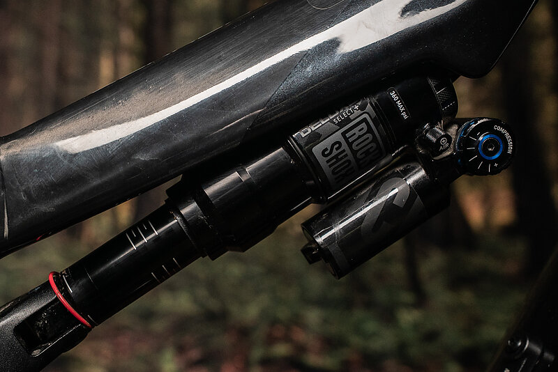 It comes stock with a nearly top end RockShox Super Deluxe Select+, and a nearly bottom-end Lyrik Base. I really wish those priorities were flip-flopped, most riders will notice a nice fork more than they notice a nice shock. I was able to make the Lyrik work reasonably well, but I ended up with much more than the suggested air pressure, along with running both rebond and compression completely closed, and adding two volume spacers over the stock zero.