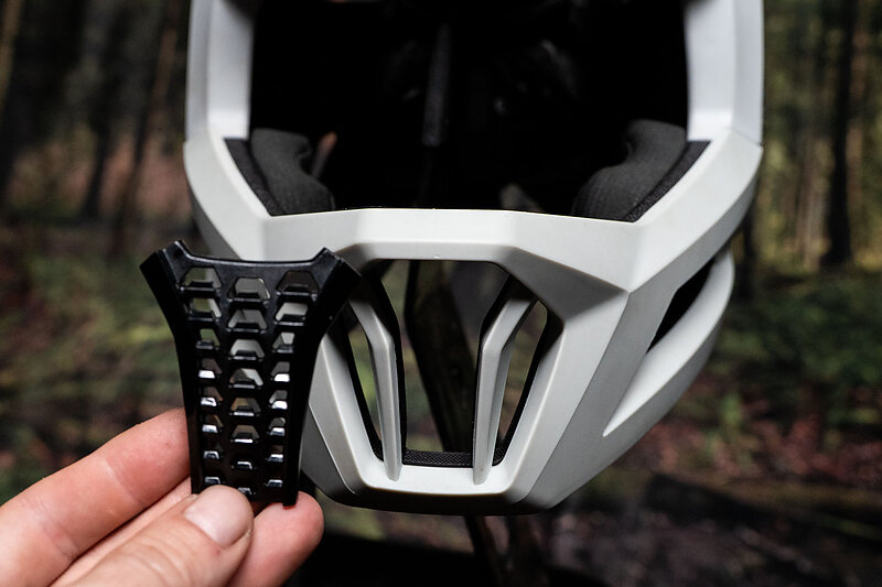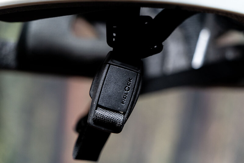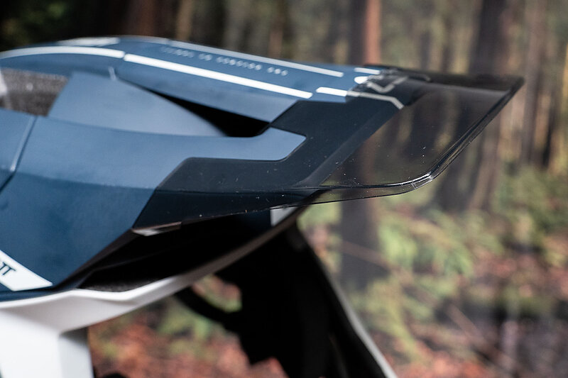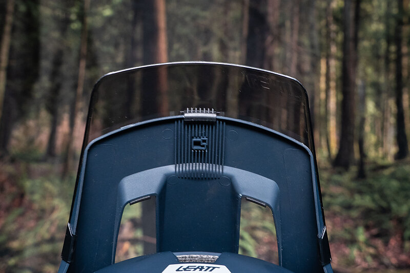 Beyond the Turbine Evo, the Leatt has a bunch of nicely-thought-out smaller features. The chin strap is a magnetic FidLock number, and the more I use it, the more I prefer it to traditional buckles. There’s a removable mouthpiece in the front of the chin guard, that you can pull out for more airflow, or leave in for more protection. The helmet ships with a peak extender, made of a translucent plastic that keeps precipitation off your goggles on rainy race days. There’s a platform for a sticky camera or light mount under the visor, and there are two positions for the cheek pads to dial in fit.