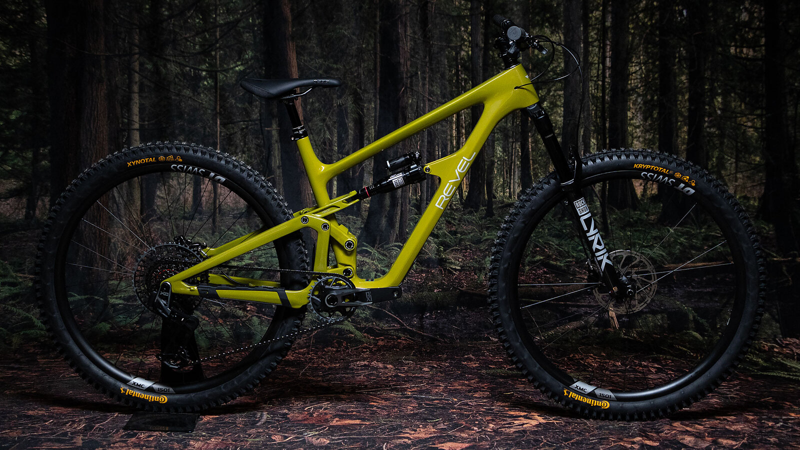 Revel launched a few new builds with the new SL frame. The XO Transmission option I reviewed is unsurprisingly centered around SRAM’s eponymous drivetrain, and an Ultimate level Super Deluxe and Lyrik. Motive Silver brakes slow you down, and DT Swiss XMC1501 Spline ONE Carbon wheels spin shod with Continental Kryptotal Trail Soft Front and Xynotal Trail Endurance Rear tires.
