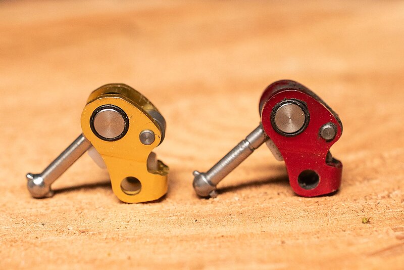 I swapped the new B1 cams into a set of original Mavens and immediately noticed that increased deadband, along with a much lighter lever feel. It’s not the end of the world at all, but it’s there. Similarly, putting the old A1 cams in the new Mavens makes them engage faster, but also requires more force to pull the lever.