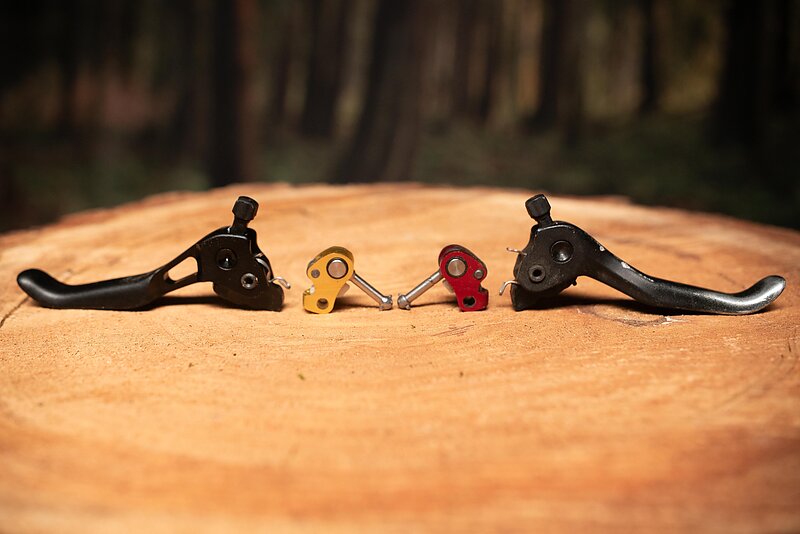 When SRAM launched the Maven two years ago, it used a red anodized A1 SwingLink cam to transmit the movement of the lever into the hydraulic system. That cam gave the system a progressive curve - the lever had less mechanical advantage at the start of its pull, and then ramped up as it got deeper into its arc.