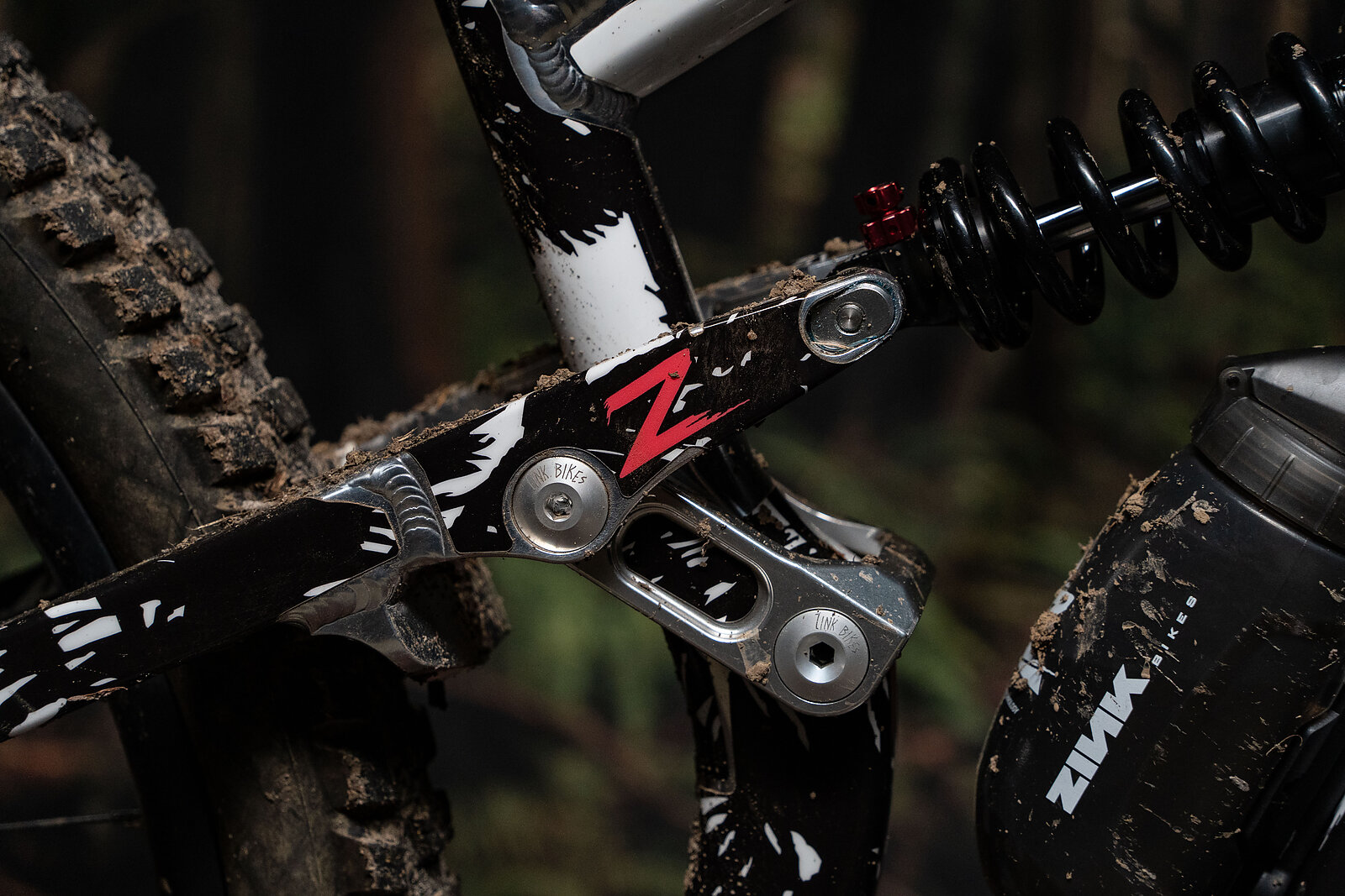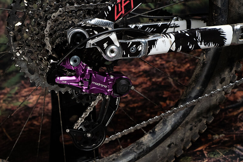 I received just a frame from Zink, and supplied all my own components. So I’ll cover the highlights: The 230x65 Fox DHX2 has been a solid performer. I’m still a huge fan of the 160 millimeter Manitou Mezzer. Its dual positive air chambers made it easy to dial in a fork feel that was balanced with the rather unique rear end. Hayes Dominion brakes are still hard to beat for easy-to-actuate power and precision. I’ll have (lots) more to say about the Madrone Jab derailleur, mated to a 10-52T SRAM drivetrain, but for now, it shifts as nice as it looks, and it looks really nice.