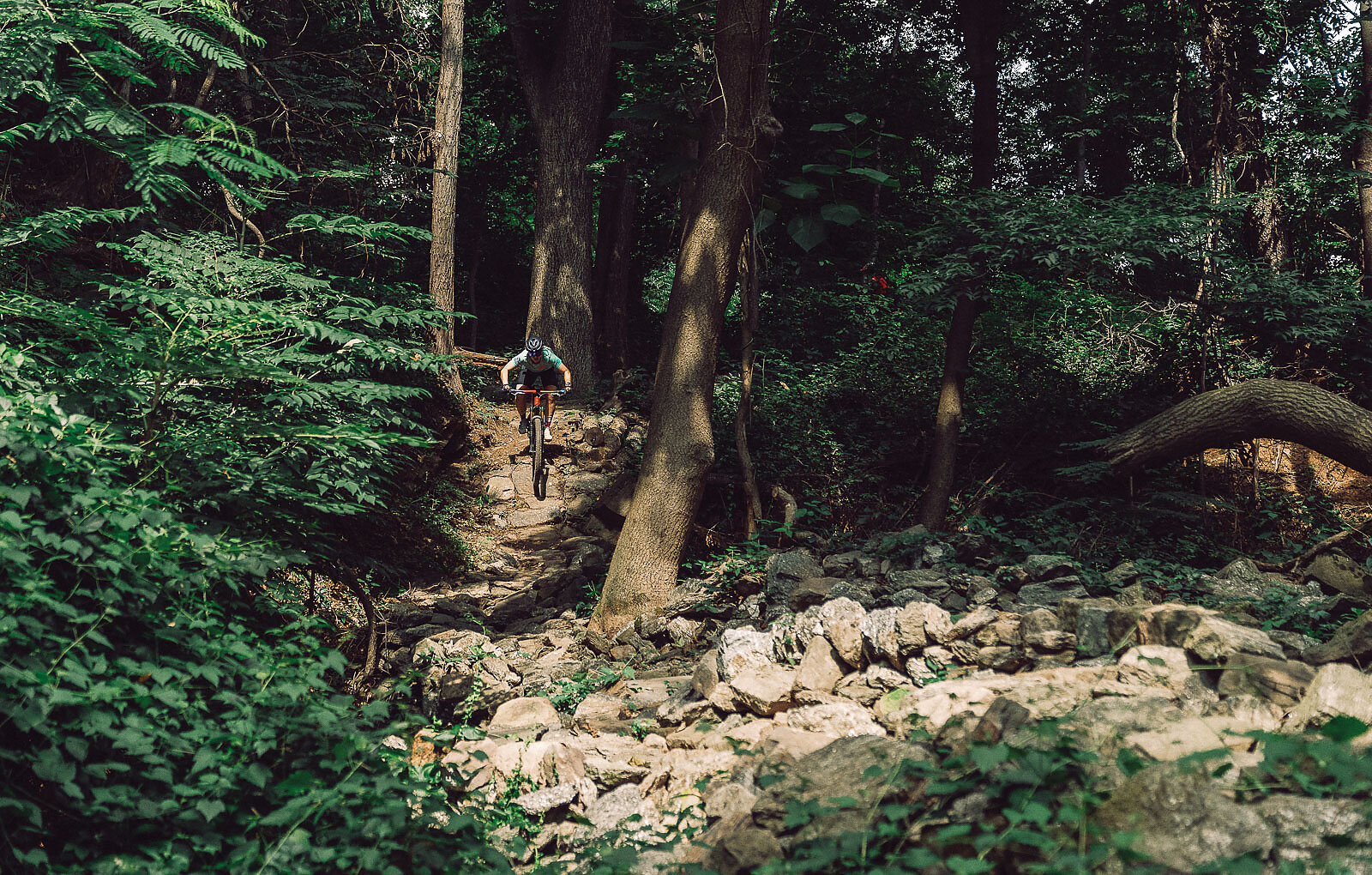 As the evening begins to fade, McGunnigle takes us up Cresheim Trail—a tight and technical climb that is part of an ongoing project to connect Wissahickon Park to smaller parks via singletrack and bike paths through the city. For now, the trail offers a challenging little loop spurring off into the neighborhood of Mount Airy. We bid farewell to McGunnigle and finish off the day on the eastern slopes following the White Trail and its off-camber rooty path. After a proper tour of the Wiss, Roberson and I make plans to meet some long-time locals at the Belmont Plateau inside of Fairmount Park the following morning.
